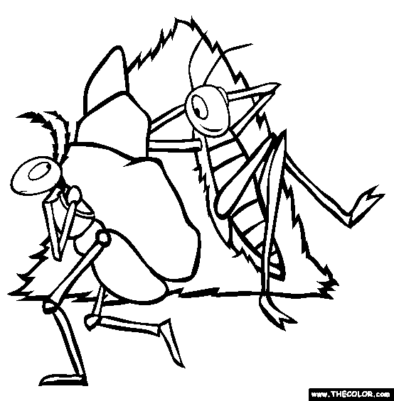 Ant And Grasshopper Online Coloring Page