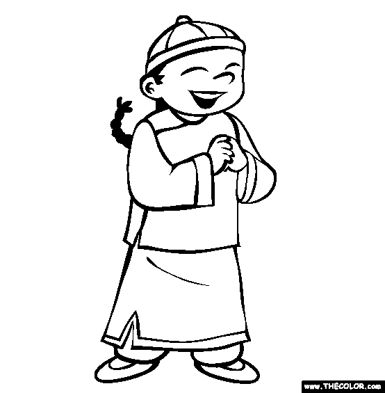 Chinese Boy Online Coloring Page
