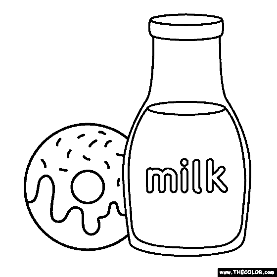 Donuts And Milk Online Coloring Page