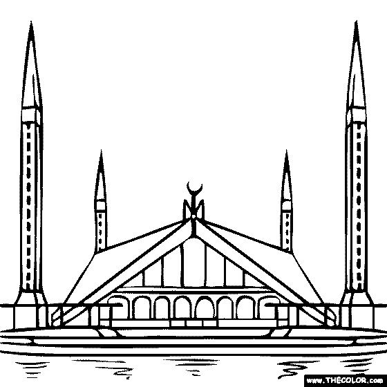 Faisal Mosque - Islamabad, Pakistan Online Coloring Page