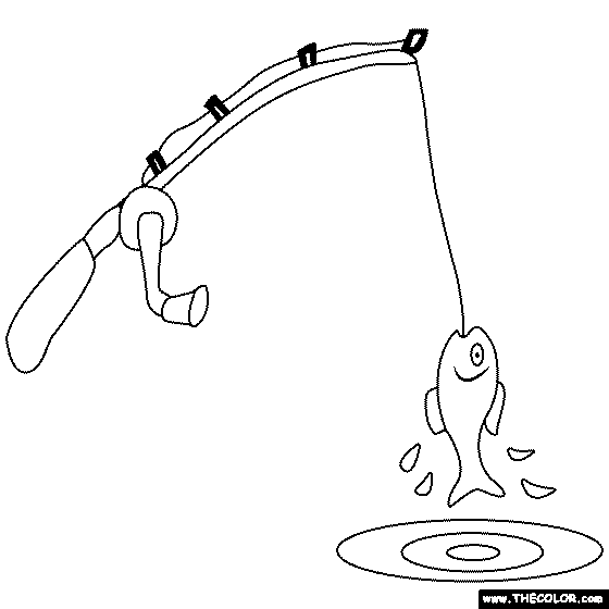 Fish On Hook Online Coloring Page