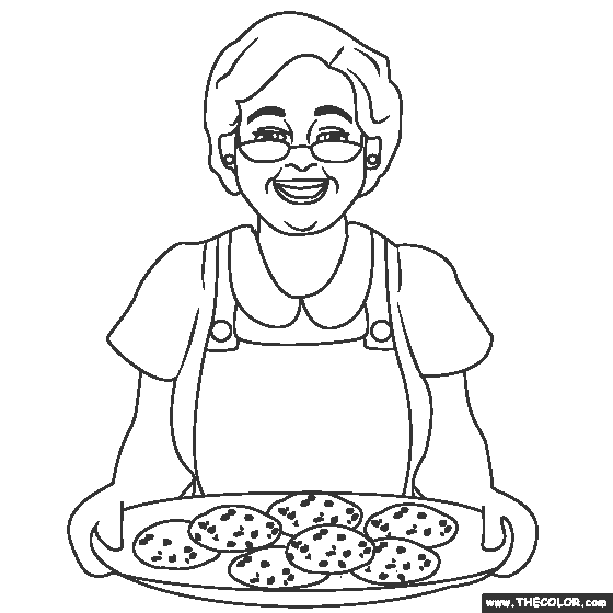 Grandma With Cookies Online Coloring Page