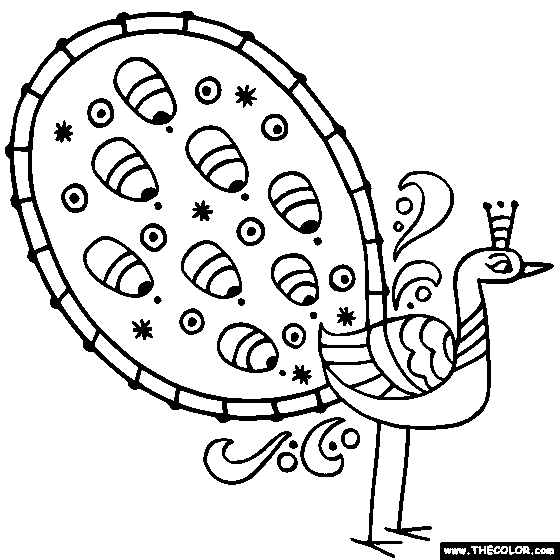 Relevant Keywords: peacock coloring, folk art coloring, Color birds
