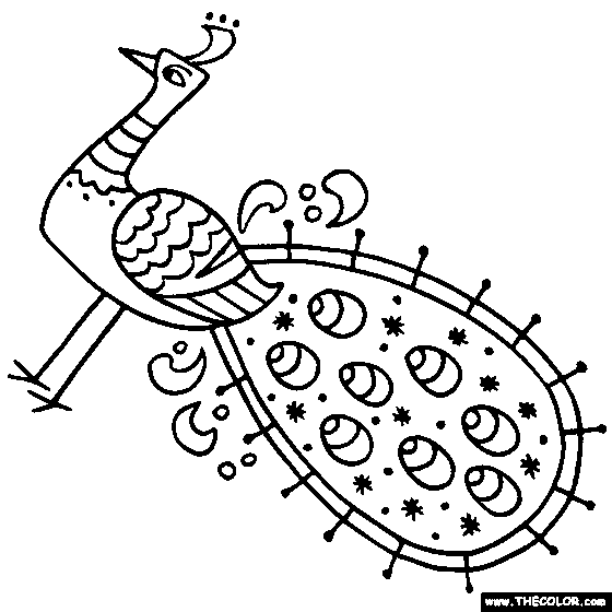 Ornate Peacock 2 Online Coloring Page