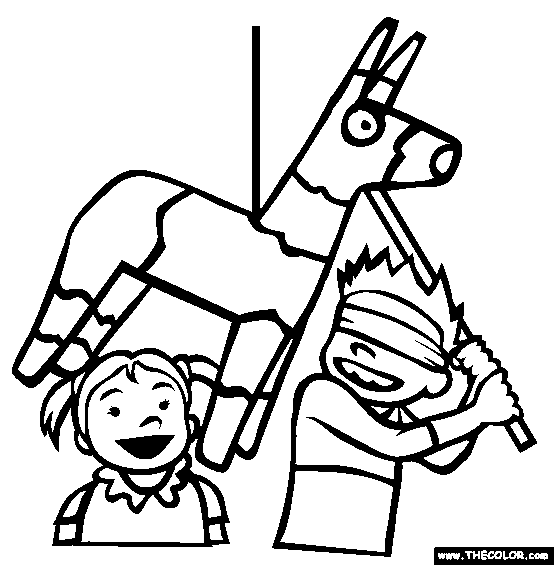 Hitting a Pinata Online Coloring Page