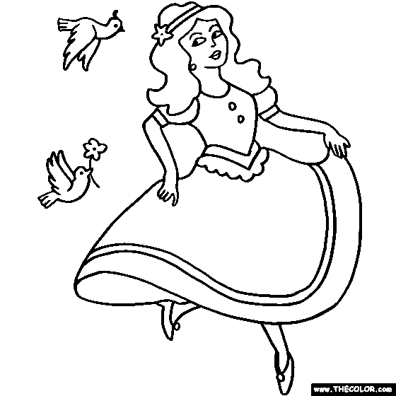 Princess and Doves Online Coloring Page
