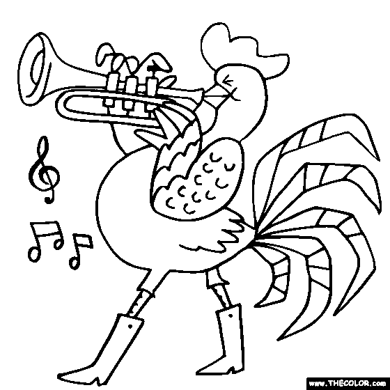 Rooster-cornet Online Coloring Page