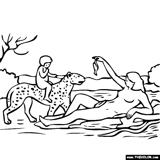 Camille Corot Bacchante with a Panther Online Coloring Page