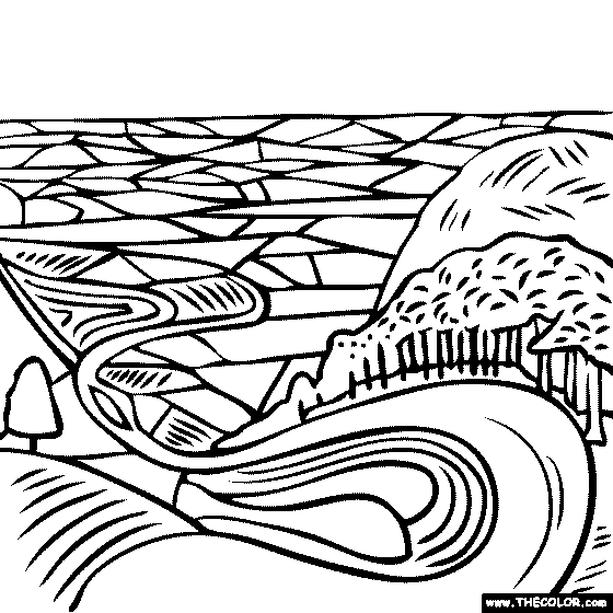 David Hockney - Garrowby Hill Online Coloring Page