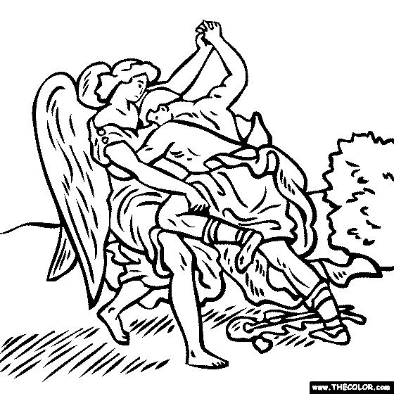 Eugene Delacroix - Jacob Wrestling with the Angel Online Coloring Page