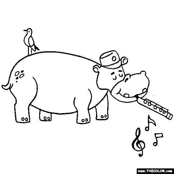 Hippo playing Piccolo Online Coloring Page