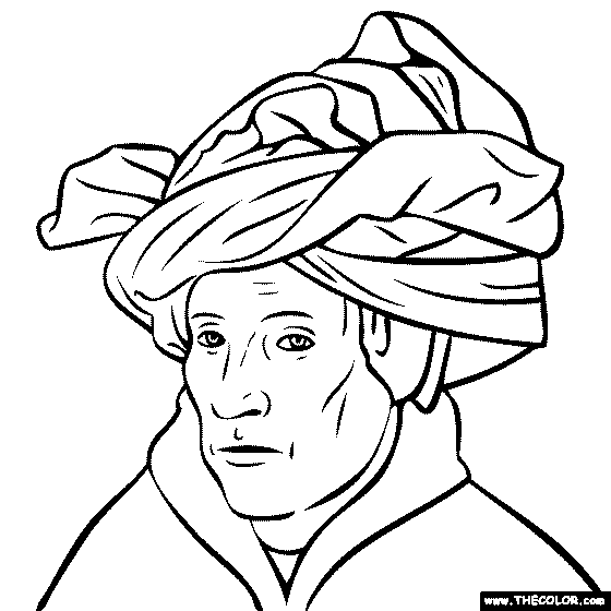 Jan van Eyck - Man in a Red Turban Online Coloring Page