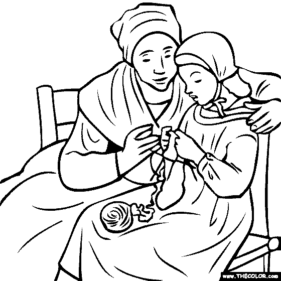 Jean-François Millet - The Knitting Lesson Online Coloring Page