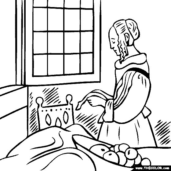 Johannes Vermeer -Girl reading a letter by an open Online Coloring Page