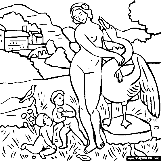 Leonardo da Vinci - Leda and the Swan Online Coloring Page