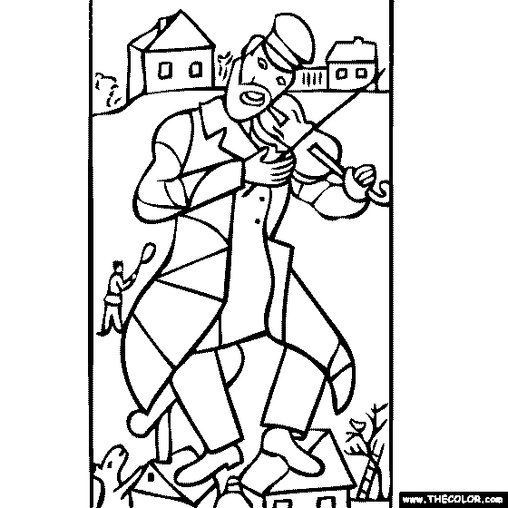Marc Chagall - The Green Violinist Online Coloring Page