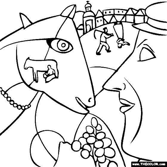 Marc Chagall - I and the Village Online Coloring Page
