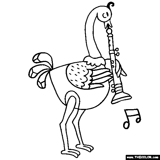 Relevant Keywords: Ostrich playing the Oboe Coloring Page, Ostrich coloring, color an ostrich