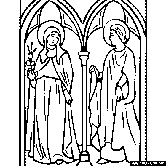 Simone Martini - St Clare and St Elizabeth of Hung Online Coloring Page