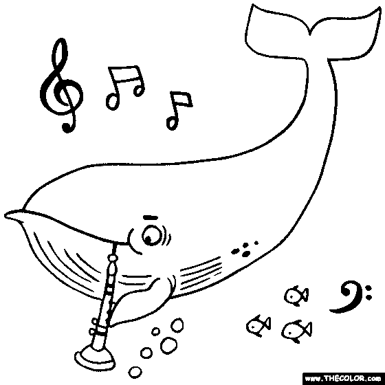 Whale playing the Oboe Online Coloring Page